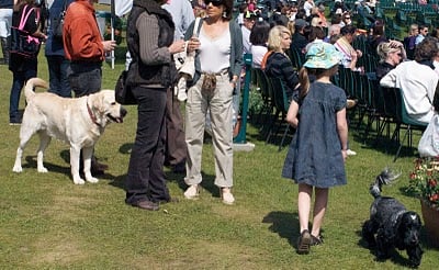 Maia du Valgrente, Oslo du Chalet, Rush d’Hoogpoort, It’s Texas de Reveil…Lors de Theize. Non ce sont pas les noms de mes nouveaux potes mais les chevaux qui ont concouru au Jumping de Chantilly. Escapade dominicale – au vert ! – où j’ai accompagné ma maîtresse qui était invitée au seul événement en France, qui réunisse sur un même site toutes les catégories de compétiteurs, de l’élite nationale – les cavaliers de l’équipe de France – aux amateurs. Grandiose ! Ambiance chic très Garden Party ! Et surtout phénomène étonnant, la présence en nombre de mes congénères : Jacks Russels surtout car très à la mode, les classiques cockers et Labradors,… un magnifique braque de Weimar. Tous accompagnaient leurs maîtres. Au programme, nous avons suivi quelques sauts d’obstacle, puis déjeuner ouvert sur l’amphithéâtre de verdure et le bâtiment des Grandes Ecuries.