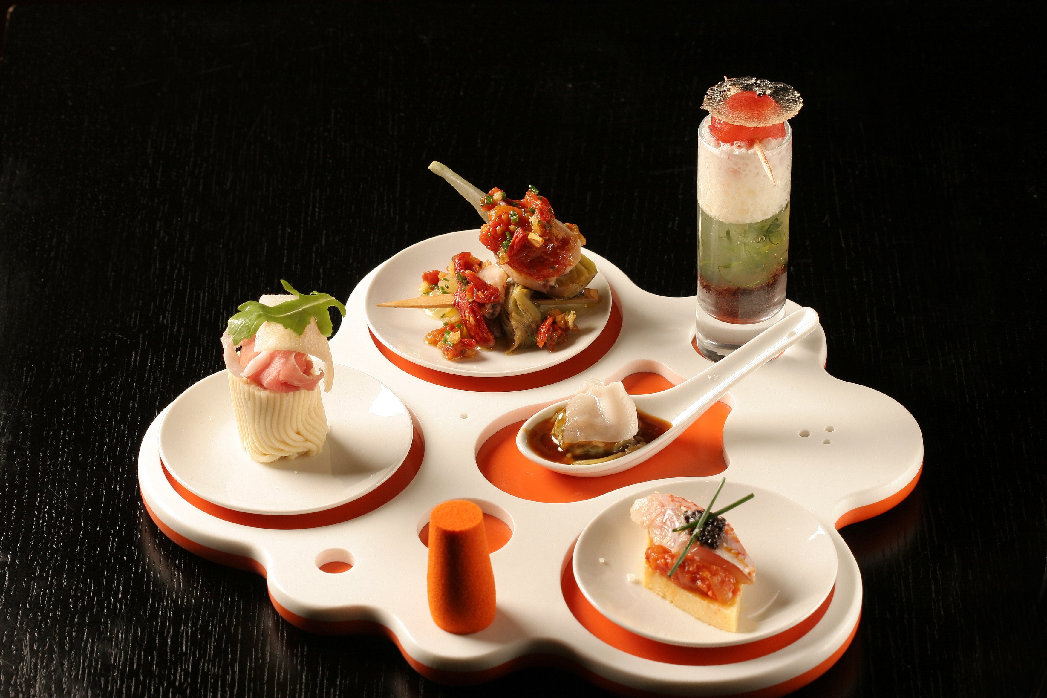 Dans le même registre d’assiette à picorer – surtout idéal pour un déjeuner entre « nanas » -, c’est la grande mode des tapas ! Rien à voir avec l’ambiance des bars de Barcelone, sous les décors de jambons suspendus au plafond ! Hum, ça sent bon ! En tous les cas , même les chefs français s’y mettent et vendredi dernier, j’ai accompagné ma maîtresse, 4 rue d’Assas*, déguster une formule concoctée par Hélène Darroze. Sa formule à 35 euros propose une très jolie assiette qui comprend 6 tapa salées avec le dessert du jour et un verre de vin. L’assortiment varie en fonction du marché du jour et de l’inspiration du chef – une étoile au Guide Michelin – ! Plus ibérique et donc pur jus, allez aussi tester El Catador dans le 17ème ; vous y apprécierez la cave à vins : exceptionnel ! Le maître des lieux est intarissable sur le sujet.