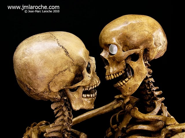 Mais là, je n’avais jamais vu autant d’os !…Quel spectacle ! Vanité érotique coquine, voilà comment je serais tenté de qualifier le travail du sculpteur Jean-Marc Laroche qui expose au musée de l’Erotisme, jusqu’au 28 Avril 2011 : Les Amants du Néant. Durant sa carrière de sculpteur, il a réalisé plusieurs œuvres érotiques, sensuelles, les voici toutes regroupées au sein de cette exposition. Ainsi, vous verrez à l’entrée une vanité au sablier qui vous rappelle le temps qui passe, plus loin six squelettes grandeur nature où les os se mêlent et entremêlent dans un kamasutra inattendu. Un fantasme de vie éternelle ? Assurément.