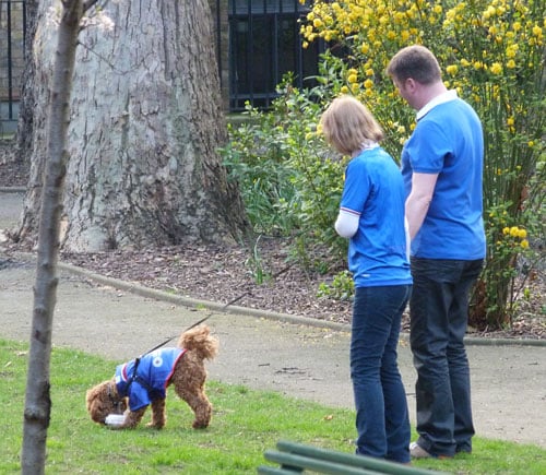 1ère étape : balade à Hyde Park. Une foule de chiens dans les allées. Elle les a zoomés sous tous les angles sans compter la chasse aux écureuils. J’ai évidemment retenu cette jolie photo de famille où l’on découvre que la mode se fait même canine pour les maîtres ! Mort de rire ! A quand mon jogging pour mes balades au Parc Monceau. Peur du ridicule ? A votre avis ?