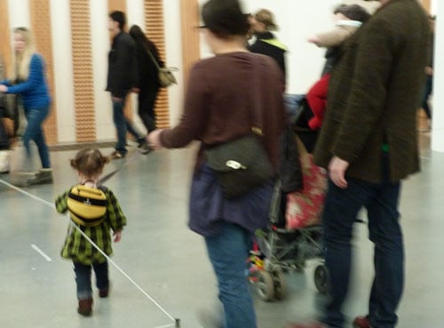 2ème étape : visite de la Tate Modern. Sublime espace d’où je vous recommande la vue magnifique sur le pont Millenium. Au milieu des oeuvres, ma maîtresse n’a pu résisté à la drôle de petite visiteuse, future amatrice d’art mais tenue en laisse par sa maman. Vive les juniors dans les musées. Moi, ça me met du baume au coeur de voir que les petits d’hommes sont aussi tenus en laisse pour faire l’apprentissage de la liberté ! Ouaf !