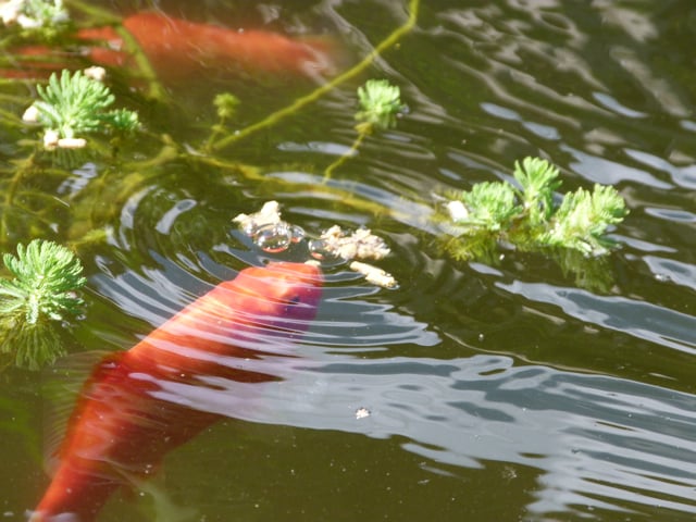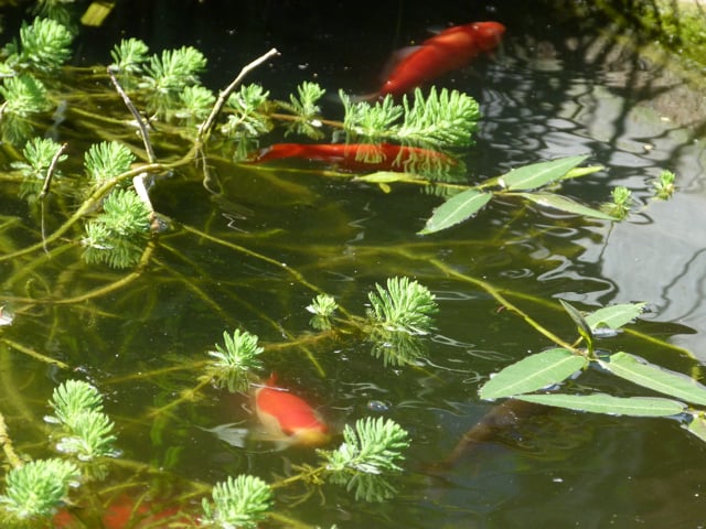 Aussi orangé que le coquelicot, mon pote le poisson rouge ! Ce bassin m’a rendu fou. Et pourtant, je ne suis pas un chat mais ils m’ont bien agacé ces poissons qui venaient me narguer et que je ne pouvais attraper ! Une bonne fricassée aurait été à mon goût mais nos hôtes auraient moins apprécié et ma maîtresse n’aurait plus été invitée ! Alors je me suis tenu tranquille !