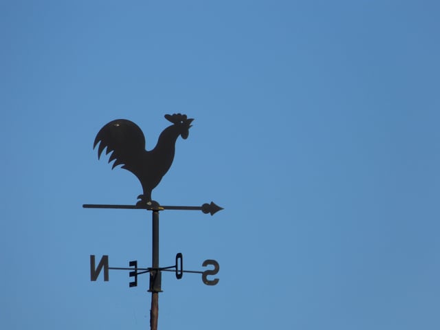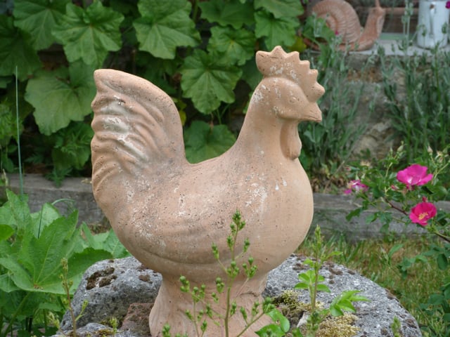Et quand j’ai quitté ce jardin extraordinaire pour aller au village, je me suis trouvé truffe à ciel avec ce coq volant ! Une belle balade dans les champs m’attendait pour la girouette que je suis, ça tombait bien.
