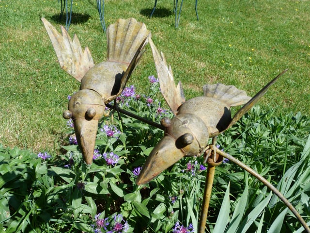 Déjà nostalgique de mon escapade au vert, je vous propose de découvrir, en images, un aperçu de ce petit coin de paradis.Imaginez que j’ai eu un jardin à moi tout seul pendant deux jours, peuplé de vrais et faux animaux. A vous d’en juger. Ma maîtresse a joué les reporters animaliers…