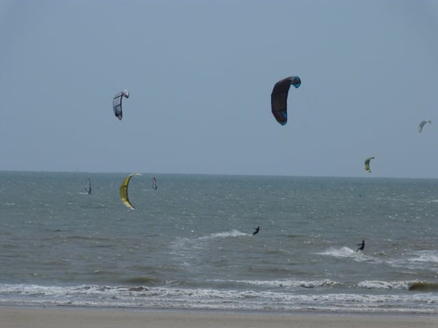On a enchaîné ensuite avec une après-midi plage et une initiation au char à voile. Par force 4, ma maîtresse n’a pas été téméraire…Voici les bolides en préparation avant la pose du mât et de la voile. Vous ne verrez rien de plus car ma maîtresse était alors en pleine action, arnachée dans sa combinaison et casquée ! Waou, le look !