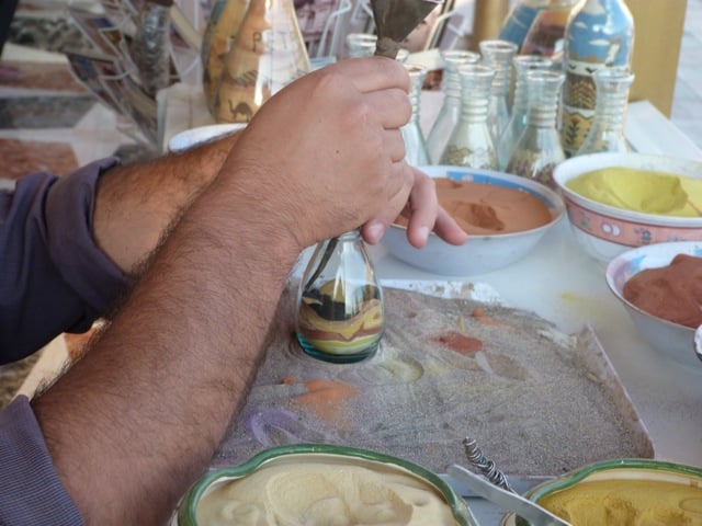 Et que faut-il ramener de Petra ? Les fameuses bouteilles de sable ! Quel talent et surtout quelle patience. Plutôt qu’un chameau, j’aimerais bien que ma maîtresse demande une commande spéciale avec un yorkie. Chiche ?