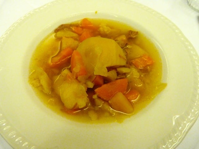 Aperçu d’un premier dîner avec la soupe traditionnelle à base d’agneau et de légumes, la Wesh Soup (cawl) et un bel assortiment de fromages ! Ma maîtresse se régale et moi, mes croquettes m’attendent ! Grr !