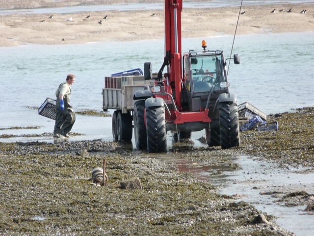 Et là, une autre rencontre nous attendait : un producteur d’huîtres ! Passionnant. Regardez-donc les paniers à huîtres et aussi sa première récolte ! Et ce bébé huître, incroyable, non ? On a fait une grande marche après être monté à bord du tracteur pour voir de plus près les casiers de l’ostréiculteur. Les explications étant en VO avec des accents gallois, mieux vaut être attentif !