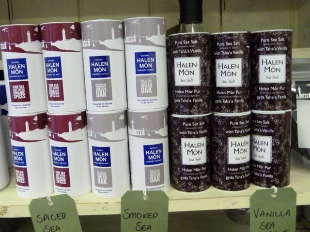Les produits locaux sont nombreux et surtout de grande qualité. Nous avons fait une halte très sympathique dans une saline réputée, Halen Môn, une petite entreprise créée il y a 12 ans et qui exporte dans le monde entier un sel d’une qualité exceptionnelle, avec des parfums tout aussi inattendus et que ma maîtresse a pu déguster. Du sel à la vanille ! Du sel aux épices ou encore saveur fumée !…