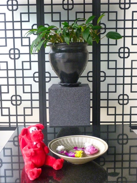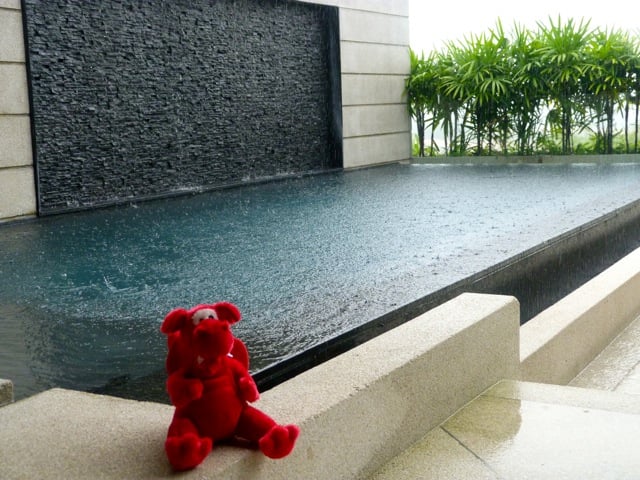 14 heures de vol et 5 heures de décalage horaire ! La soute à bagages et les changements de vol : hors de question ! Je me suis donc abstenu de ce voyage que je chronique en cabot bavard… car je ne suis pas un « jet lagueur » et désormais j’ai un assistant rapporteur et espion : la nouvelle mascotte de ma maîtresse, Dafydd, le diablotin rouge gallois, qui l’accompagne partout ! Jaloux, moi ? A peine !…Vous allez le retrouver sur ses photos et le voir même sous la mousson !