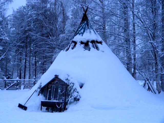 Ma maîtresse qui revient tout juste d’une petite expédition dans le nord de la Finlande, à Lévi à côté de Kittila, est encore sous le charme. Que diriez-vous de découvrir l’habitat lapon ? Le tipi.