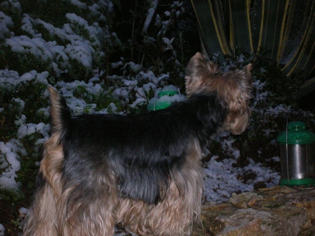 Hier matin, au réveil, quelle bonne surprise ! Le jardin était tout couvert de neige ! Je précise qu’en ce moment, je suis en villégiature dans le Var. Même pas eu froid aux papattes ! Je me sens donc prêt pour partir en Laponie faire mon stage de chien de traîneau.