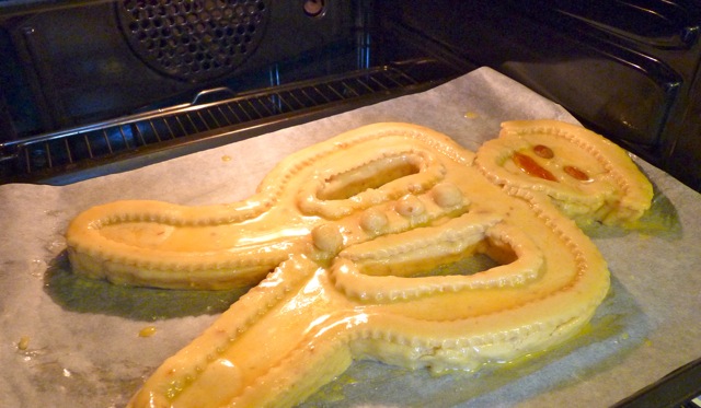 Avant la cuisson, attention pensez à bien dorer deux fois avec des oeufs battus. Ensuite il faut cuire à four chaud 170 degrés et dès que le pantin devient bien doré, sortez le du four et évitez qu’il ne soit trop sec. Mon conseil de glouton, attendre 24h avant de le déguster… si vous pouvez ! C’est encore meilleur.