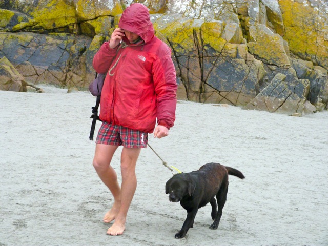 Vous êtes prêt à surmonter le froid qui fouette, le vent glacial et le crachin ? Alors suivez notre guide Romain Pilon et sa chienne labrador, Varennes. Pas de chance pour la balade matinale ce matin-là car il faisait vraiment très froid et les deux heures de trans-baie ont dû être un peu abrégées. Ma maîtresse a vécu ce moment inoubliable et s’est chargée des puissantes énergies du lieu.