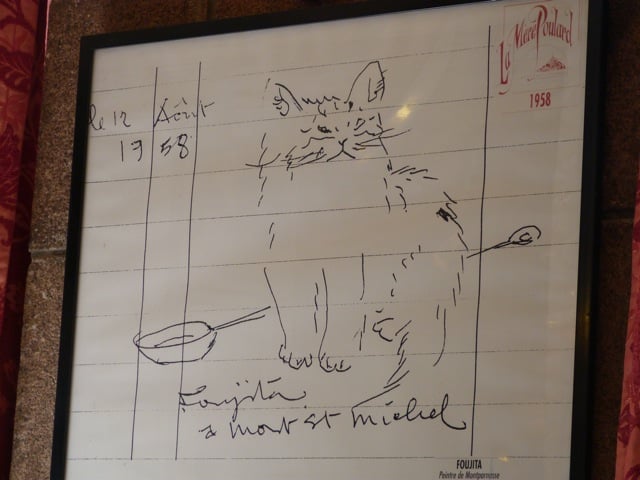 La coutume était que les pèlerins épuisés reprennent des forces en mangeant la fameuse omelette riche en beurre de la Mère Poulard et en y séjournant pour la nuit. Mais qu’en dire aujourd’hui ? Faut-il ou non avoir la curiosité de tester l’omelette de la célèbre auberge ? Si comme Saint-Thomas, vous voulez appréhendez par vous-même – au-delà des mises en garde objectives de certains critiques -, alors offrez-vous juste le plaisir du lieu ! Plaisir d’imaginer tous les grands de ce monde qui sont passés par la Mère Poulard comme en témoignent affiches, photos, dédicaces (voir le chat dessiné par l’artiste japonais Foujita).