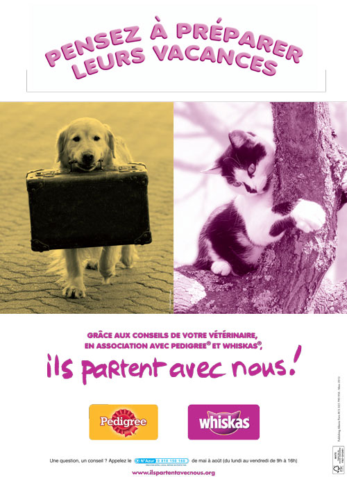 Alors soyons solidaires et vous aussi faites connaître la campagne « PENSEZ A PREPARER LEURS VACANCES ! » : une belle initiative lancée par Pedigree et Whiskaspour la 27ème année. Des conseils, des dépliants, un numéro indigo et un site pour avoir toutes les bonnes adresses de gardes à côté de chez vous. Bref, tous nous aident pour passer des vacances au poil ! Qu’on se le dise.