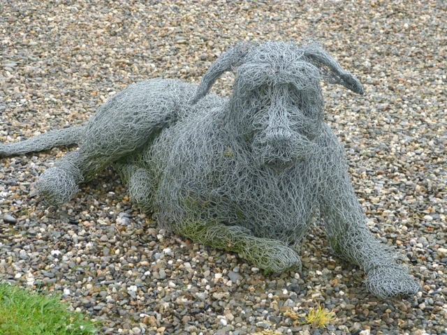 Détail canin qui fait illusion de loin dans les allées du parc : une sculpture en grillage !