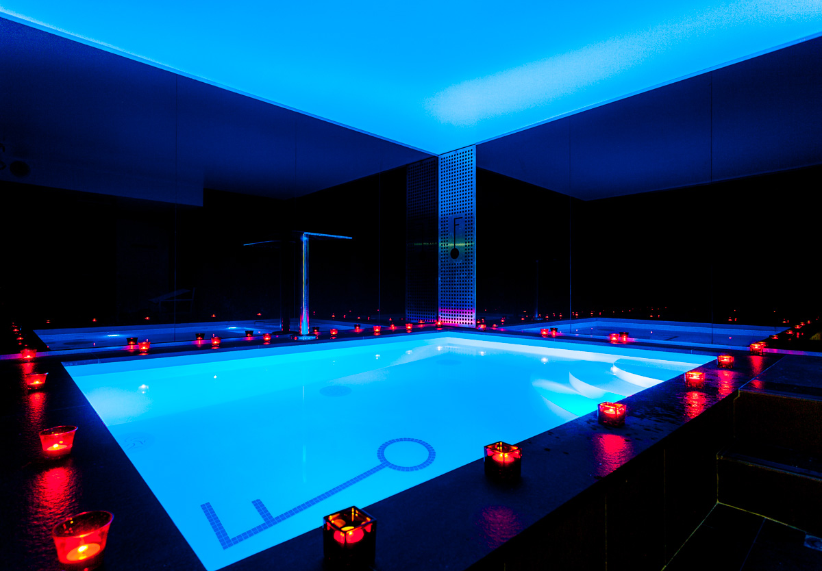Moi le cabot de petit format, je suis accepté à au Félicien ! Ouf ! J’ai fouiné et fureté partout. Au sous-sol, une petite piscine pour se donner bonne conscience. Enfin, il y a aussi une mini salle de gym avec trois appareils de tortures pour hommes d’affaire voulant faire du muscle, un espace massage avec un système de lumières chromatiques qui varient selon les types de soins.